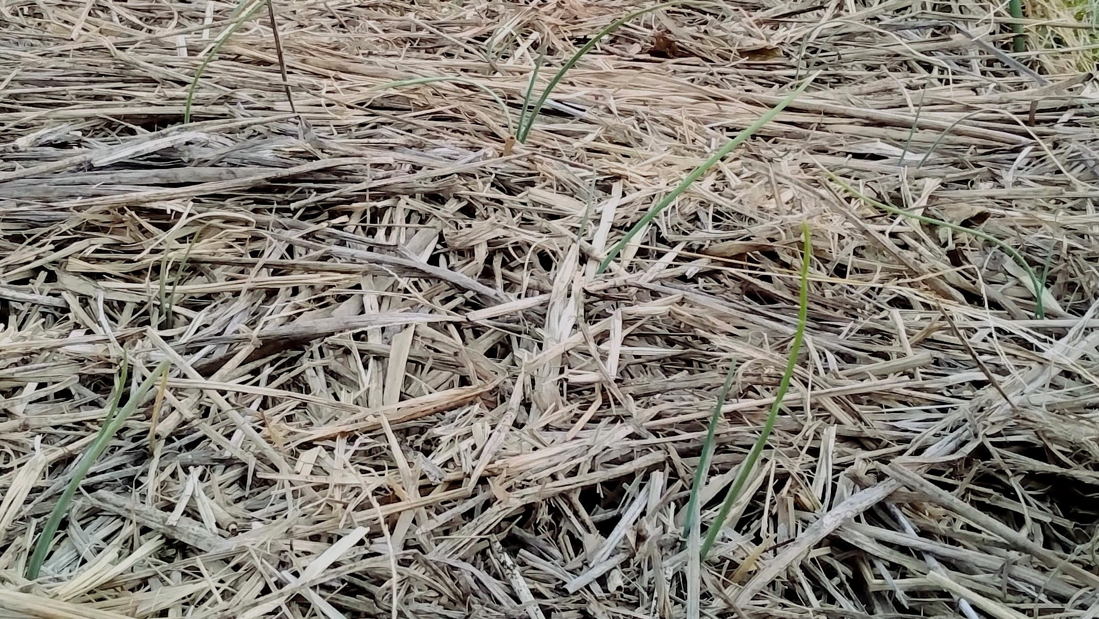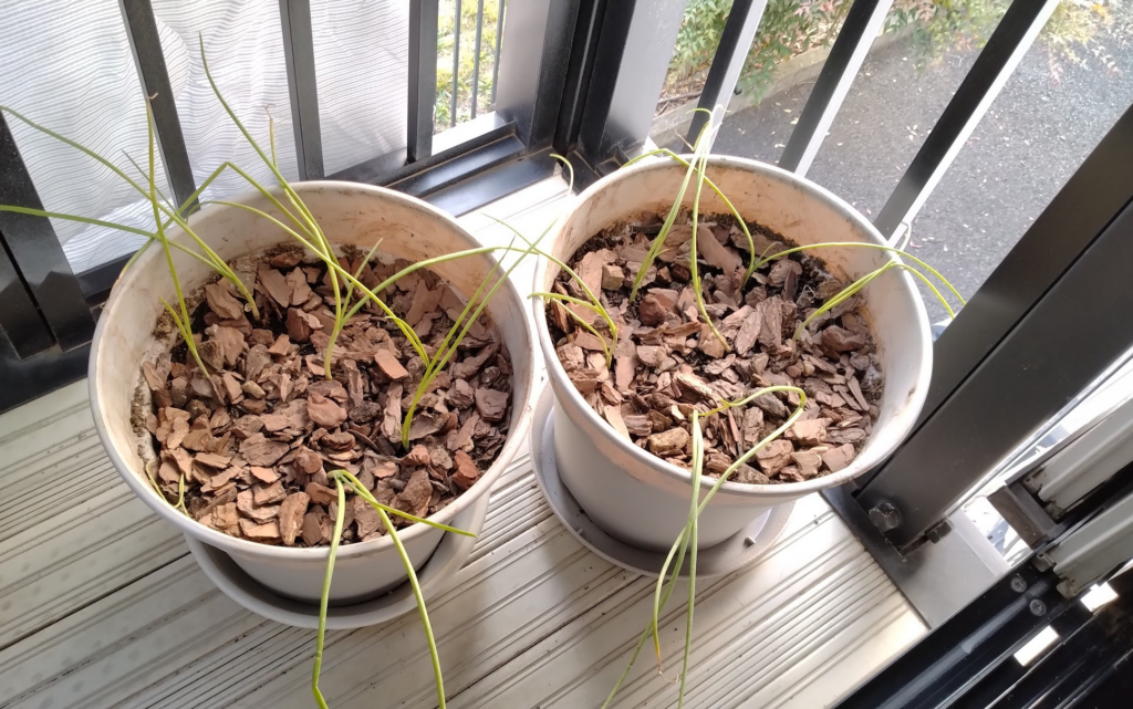 写真は、先月少しだけ購入したタマネギ苗を、一時的に自宅ベランダに鉢植えしたときと、畑に定植した後の様子。(写真だと、周りに敷き詰めた稲わらで、苗が少々見えづらいかも?)