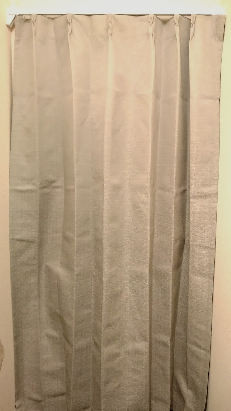 そこで帰りがけに、突っ張り式のカーテンレールと厚手のカーテンを購入、取り付けてみました。そうしたら、カーテン内側と外側で体感温度が随分違うので、そこそこ冷気を遮断してくれるみたい。これも暫く様子見です。